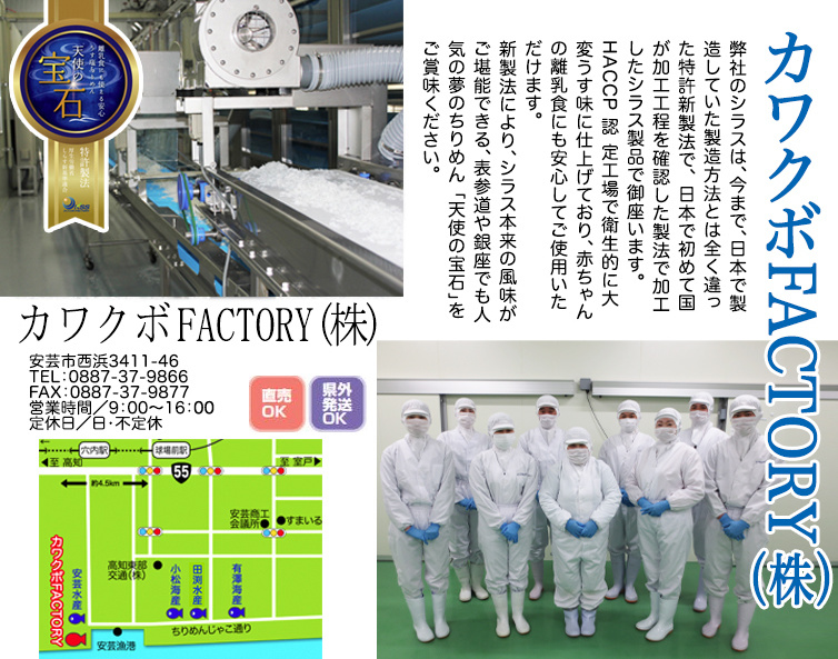 新製法により、シラス本来の風味がご堪能できる、表参道や銀座でも人気の夢のちりめん「天使の宝石」をご賞味ください。