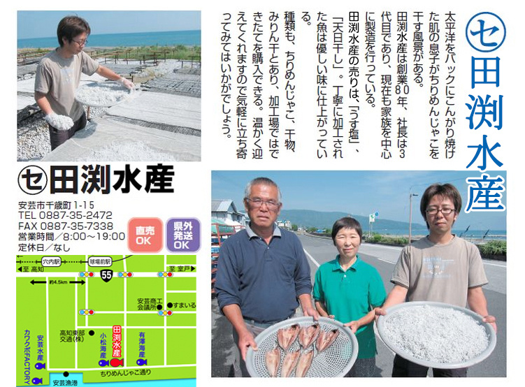 加工場での直売や全国発送も可能で、見学できる店もありますので、安芸にお越しの際には是非お立ち寄り下さい。